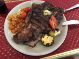 Ну? И? В выходные мы делали сами говяжьи ребра - вот там размер.... а тут - просто плевок в душу! Две жалких кучки мяса и огромная кость на всю тарелку. 25 евро, на минуточку...