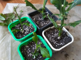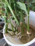 Все уже привыкли наверно к тому, что я сею и проращиваю все, что семена формируют, и все, что в землю воткнуть можно :D. Так вот, когда мне подарили на день рождения белые хризантемы, и розочку, а потом на 8 марта желтые, я их начеренковала, когда уже цветочки стали вянуть и в воду поставила. На череночках белых хризантем уже приличные корешки, на желтых- пока на одном, на остальных каллюс приличный. А вот черенки розы стояли-стояли, аж проростки приличные выдали и даже каллюс начали набирать, и вдруг резко почернели :(. Я еле успела те наростыши с них отщипнуть с пяточкой и тоже в воду поставила, и опять они стояли-стояли, нарастили приличный каллюс. И все это добро я решила сегодня в землю посадить, желтых хризантем один с корнями , остальных с каллюсом. Потом череночки хризантем под пакеты поместила, а розы под стаканы! Теперь бы все это добро еще и приросло!
