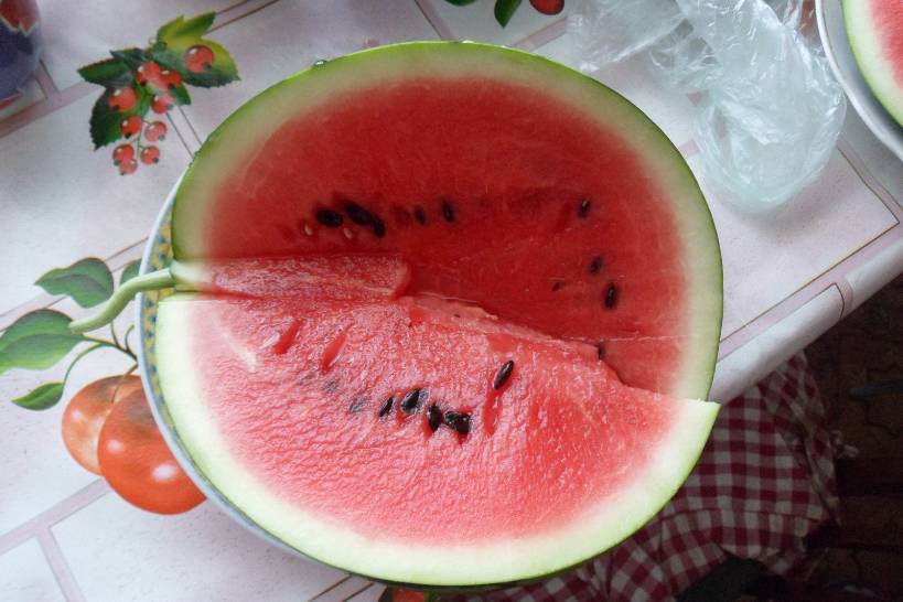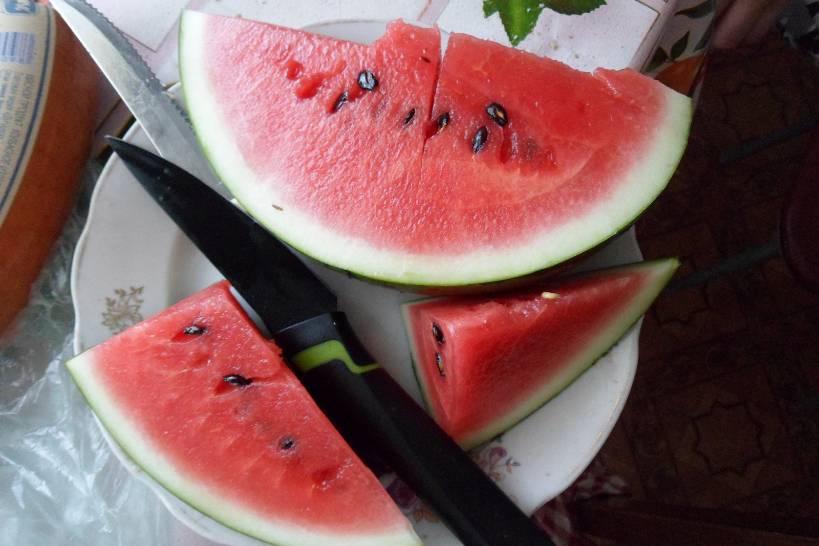 Тот что на фото (разрезан) был выращен в объеме 8 литров, вес плода 2.2кг. Сейчас тот же куст снова завязал (2 плода, не факт что оба вытянет), надеюсь что к середине августа арбуз поспеет (а там уж проблемы с солнцем начнутся, его будет мало).