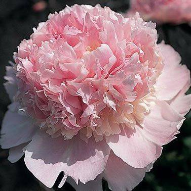Махровый бомбовидный. Среднего срока цветения, цветок диаметром 16 см, нежно-розовый с небольшими красными мазками на скрученных центральных лепестках, аромат лёгкий, куст высотой 70 см, не разваливается, стебли прочные. Один из шедевров! Сорт получил золотую медаль от американского общества пиона в 2005 г.