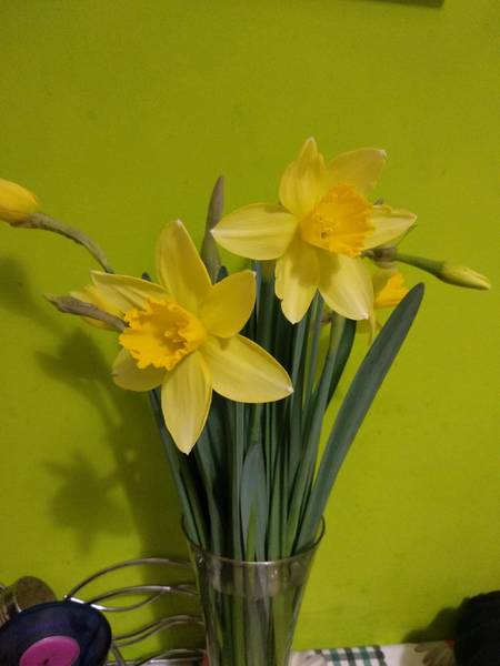 Привезла вчера с дачи букетик бутонов Нарциссов. Сегодня уже цветов.