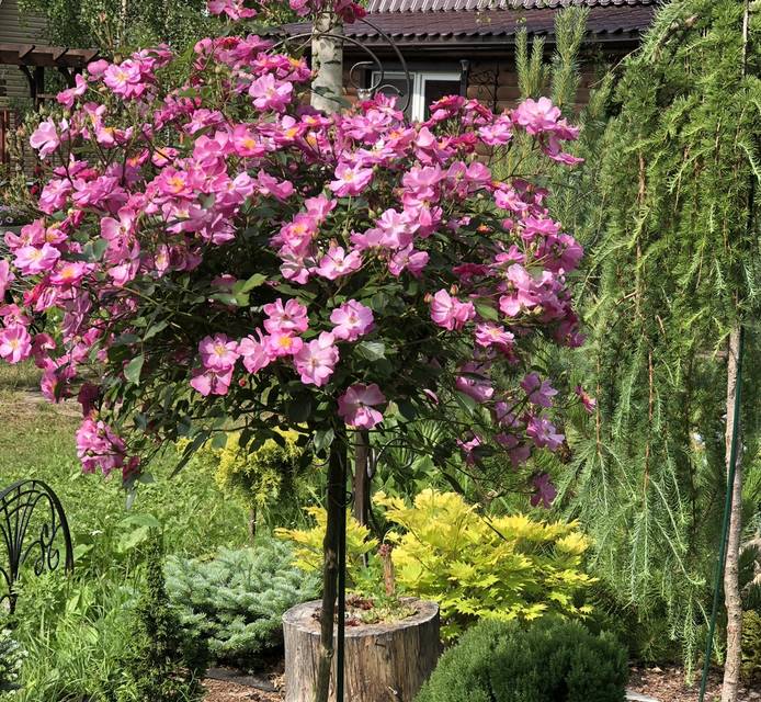 Да я тоже мало фотографирую. И фото парадное на второй год жизни моего штамба ещё поискать надо. Выложила свою фотографию, так как удивилась, как могут штамбы в Настиной закупке продаваться, если такая форма розы добивается прививкой  на штамб.