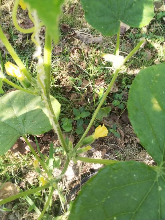 К счастью, града не было, и тыквенные не пострадали. Чикагский Хаббард вспомнил, что он плетистый, и заплёл уже треть огорода. Чикагский чувствует себя хуже - вредят муравьи, борьба с ними пока не особо успешна.  Страдает от них и ДДДД. А вот рядом находящемуся Альпинисту они похоже не мешают.Зорька ведет себя скромно, но пытается зацвести женскими цветами.