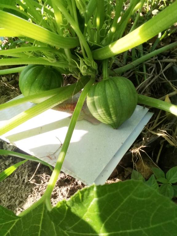 Мои тыквы наконец начали вязать. Только вот кто из них кто... Похоже, то что я считала Бургес Баттеркапом, оказалось Австралийским маслом или его родственником - гонит жёлтые плети. Но завязывает плоды хаббардовой формы.