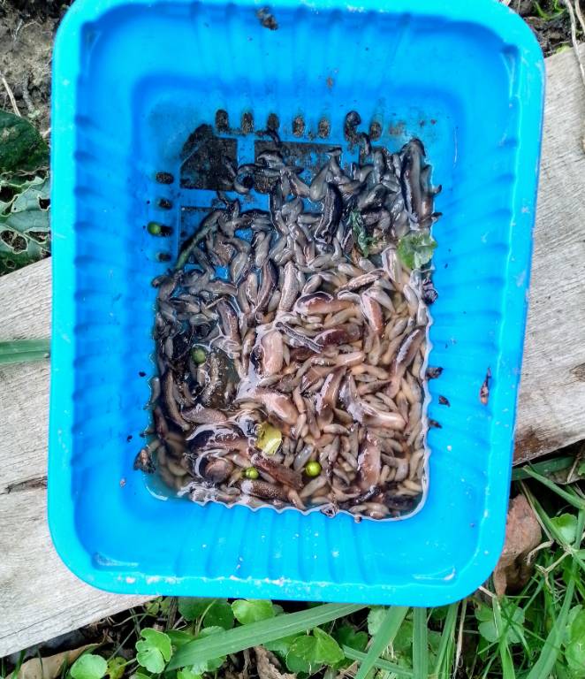 Давить слизней не рекомендуется, поскольку это неэффективный метод борьбы, который может усугубить проблему: их слизь привлекает других слизней, и раздавленные особи служат для них пищей, стимулируя дальнейшее размножение,