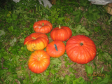Вот мой скромный урожай тыкв - желтая вытянутая Прикубанская, мелкие оранжевые Праздничный десерт F1, зеленые большие - мускатные Жемчужина, большие оранжевые может быть Дынные.