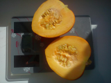 В этом сезоне, снова посадила порционную -  Sguash Acorn Table Gold. Мякоть очень плотная, кожурка тонюсенькая, а по вкусу похожа на морковку.