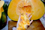 Конечно она не вызрела, семечки "молочные", но мякоть наросла толстая и сочная. Я просто не ожидала, что она будет такая вкусная. Думала будет трава-травой. Когда разрезали, оказалась совершенно без тыквенного запаха, мякоть нежной сочной консистенции с фруктовым вкусом.