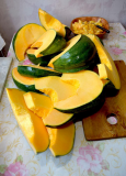 Хочу показать фото, как разделывали тыквину Тунис №1, которая завязалась в сентябре и наросла просто огромной, потом сидела в "пальто" в октябре.