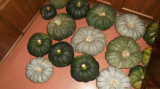 У меня в этом году росло всего 7 разных тыквенных растюх из 15 посеянных. Как оказалось, этого урожай для меня более чем достаточно. На фото нет одной фарфоровой куклы, одного баттерната и одной серокорой короны, подаренных дачной соседке, и недозрелой Мияко, пожаренной с луком и с удовольствием съеденной ( :yep:).