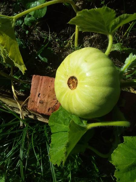 Буен густо де хорно. После снятия первых двух сразу же выдал эту тыковку, начинает вызревать плодоножка.