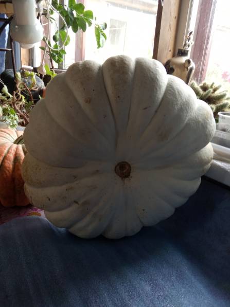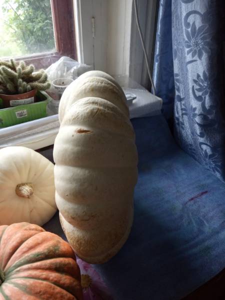 В прошлом дождливом году вырос красивый White Flat Boer около 10 кг. Разморозила его и сегодня ела на завтрак и на десерт на ужин. Вкусненький! В этом году пообещала дочке посадить, но на кустике не выросло ни одной тыквы.