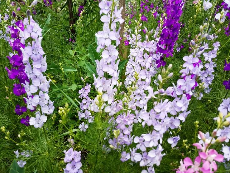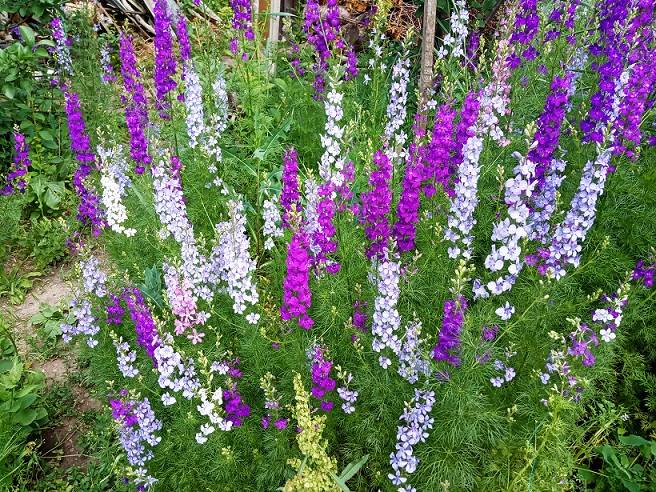 РАЗНОЦВЕТИКИ,преобладает сиренево-голубой цвет.Есть ещё розовый,белый и фиолетовый.В этом году взошли сплошным ковром,а в прошлом-не было совсем