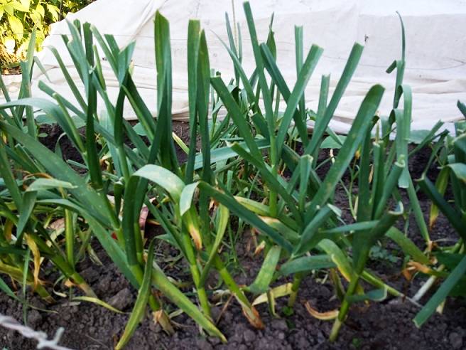 Чесноку моему пришёл конец,ржавчина его накрыла.Обрабатывать не буду,так как даже если это поможет(в чём я очень сомневаюсь,всё очень запущено),не хочется травиться.Чеснок уже сформировал головки,думаю что до консервации долежит.