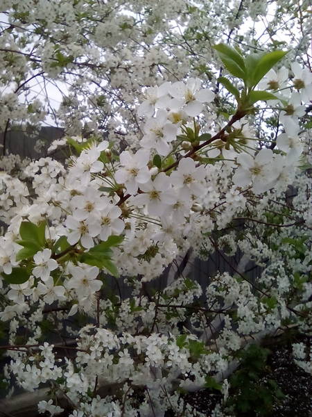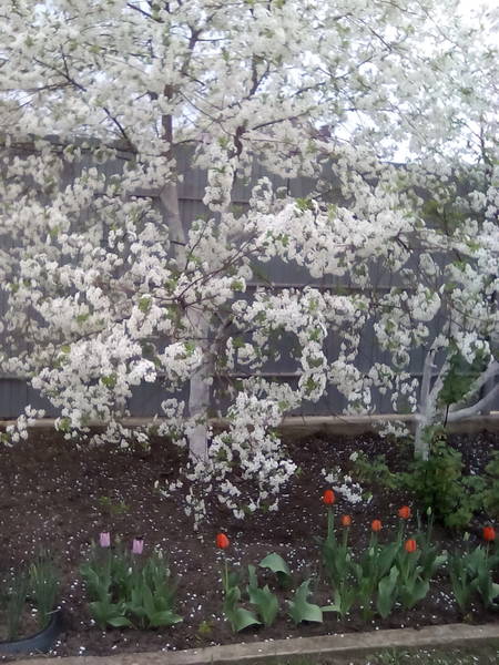 Абрикосы отцвели, вишня цветет, груша и слива тоже.