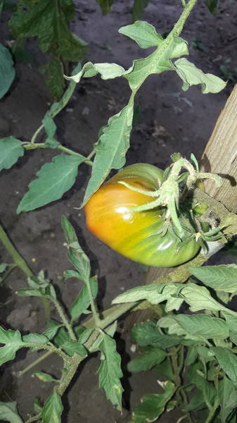 один созревший томат  Red German Strawberry