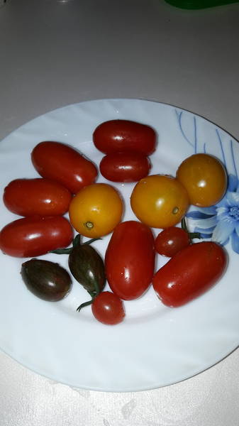 Сижу дегустирую пригоршню черри. Сегодня собрала со всех кустов, ем и сравниваю. Вкусные все, но ИМХО самые вкусные - Криспина плюм F1. Саммер и стар голд слаще, но они иногда слишком сладкие, до приторности. Криспина же... У нее обалденная текстура и очень богатый вкус - одновременно и насыщенно-концентрированный и мягкий. Сбалансированный сладкий черрик с массой оттенков. Вот реал роскошный вкус. Ну и красивая да - темно-темно коричневая в зеленую полоску, красноты совсем нет имеенно насыщенно коричневый цвет, блестит как гаргамель и форма - листочек - округлая пуля. На фото мелкие Криспины, в основном она раза в 2- 2,5 крупнее.