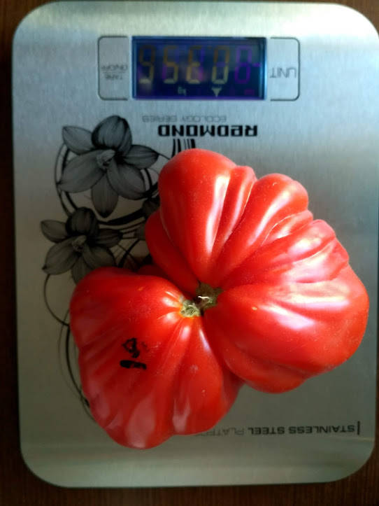Два сезона выращивала томат Мясистый из Луки. В 2017 был урожайнее. Вот плод 2018. В этом не повторяю, но очень достойный.