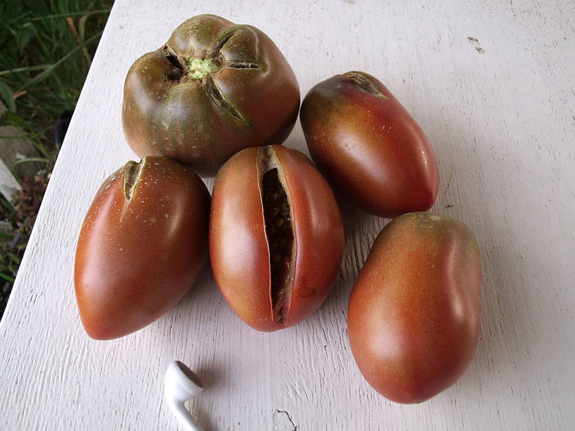 Павел, а вы Черную сосульку не сажали? Похожа на Пурпурный русский, только форма более однородная сосулечная, очень вкусные и не трескалист так. Еще из темных очень Мармеладную лампочку рекомендую. Если нет таких, могу прислать по осени.