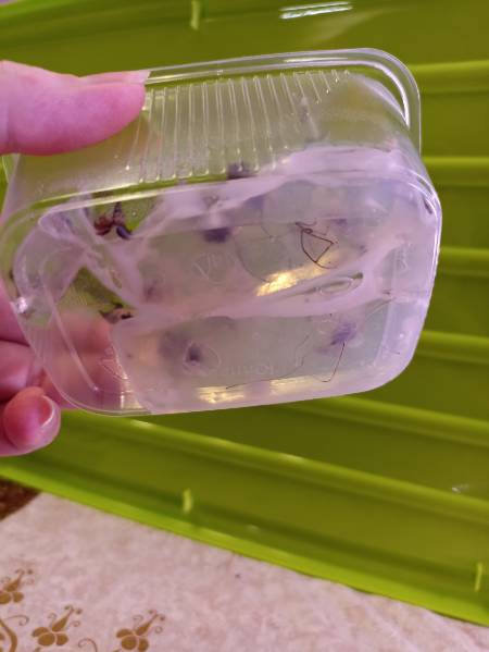 - полкоробочки  ( 5 штук )  "холс Бьюти "- с черной плесенью. Не сплошняком, а очагами. И гель внизу тягущий и белый: