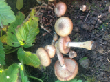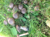 Вот такие красавчики выросли на грядках с клубникой и рядом на газоне,три года назад пришлось срубить три здоровенные березы, пни спилили, а корни остались под грядками. Теперь растут целые дорожки грибов, очень похожих на опят. Так ли? Кто подскажет?