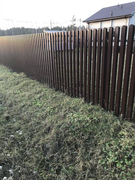 У меня стоит на фасаде, третий год евроштакетник из металлического профиля. За это время ничего ему не сделалось, Ставила в разбежку по забору, зазор 2 см и по голландской системе на воротах и калитке, это когда с двух сторон штакетины, зазор между штакетинами 6 см. Штакетник двусторонне окрашенный в зеленый. Односторонний это когда с лицевой стороны цветной, а с изнаночной серый, получится паршиво ибо в зазорах будет виден этот серый, не хочу. Обошлось мне 25 метров такого забора около 30 тысяч.