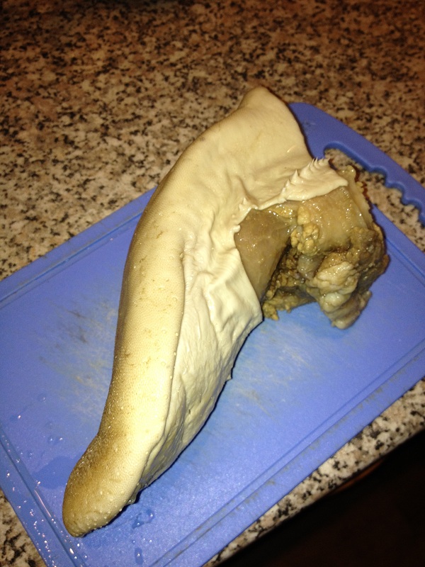 Нарезаем готовый язык соломкой.