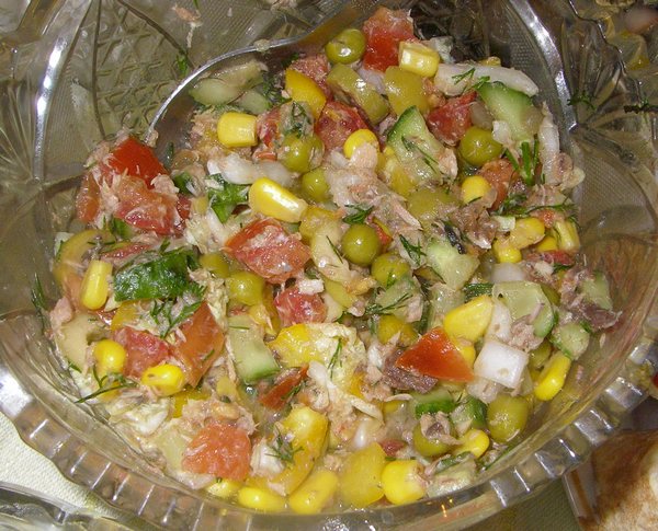 Овощной салат с консервированным тунцом.