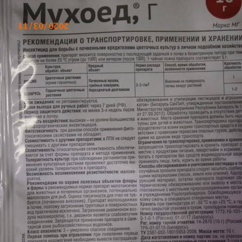 Ну и что? Ведь 60 дней или 7 дней это время от первого применения до последующего.В прошлом году летом применяли. Дней через 5 мошек практически не стало. В отношении трипс это или мушка заочно судить сложно. Между двумя этими "зверями " есть различие, которое можно увидеть при внимательном "разглядывании .