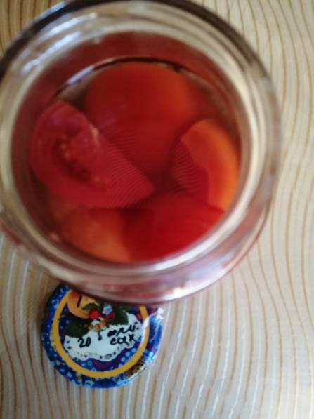 Муж сегодня на завтрак к омлету, открыл баночку томатиков, на крышке написано без сахара, без соли, 20г. Явно не ачучук. Томатики такими красивущими целыми дольками лежат :06yes:.Он значит достаёт дольку помидора и восхищается - свежий помидор! А я судорожно начинаю вспоминать ГДЕ Рецепт, чтоб поставить плюсики?  Сразу начала листать заветную тетрадь - нету, в телефоне - нету, в компе - нету:1203:. Уже дёргаться начала, шарики ролики в мозге крутились с запрещённой скоростью:crazy:. И тут озарение, посмотри Ватсап, я ж все ссылки на видео мужу отправляю! Фуууух, нашла! Буду закатывать так всегда!!! Сразу в тетрадку зарисовала :01mail: