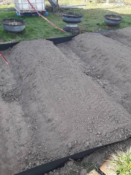 Дорожки между грядками с земляникой не должны быть ниже основного уровня участка, чтобы там вода после ливней не стояла.   А саму грядку приподнять на 10-15 см нормально, позже осядет, к зиме почти сравняется