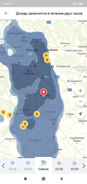 Если верить Яндекс-картам, туча пройдет севернее Домодедово. Южанам повезет, нас вечерний дождь наверно стороной обойдет. Но! Ночью может придти другая тучка. Покой нам только снится :crazy:
