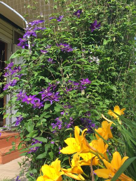 Помидоров даже зелёных практически нет, клубнику, как обычно, долгоносик ополовинил. Хоть клематис радует.
