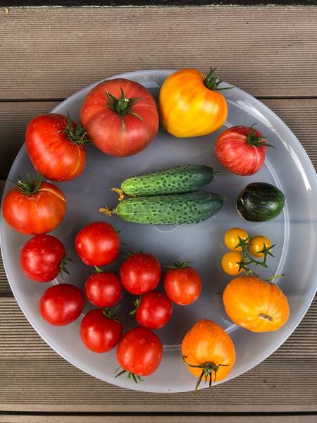 Моя тарелка дня:FB49D97B-ED45-471D-B8B6-35B594B227C8.thumb.jpeg.c147f7494852b83a3badd3f3a17f9b99.jpegДед Иван, Канадское наследие, Королева томатной галактики, Rebel Starfighter VT16, хвостик Летнего солнца, Ранний оранжевый Розали - 2 шт, россыпью Тётушка, мятные - 2 шт и 2 Германа.