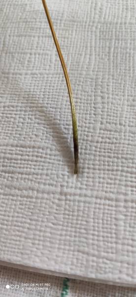 Стебелёк, который в воде, тёмный, на нем налет от цветущей воды.