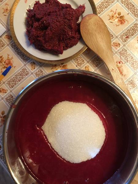 У меня на белой очень много отходов получилось на 1250 гр- 500 гр, и протирать было тяжело, веточки мешали,  и сахар, а если бы больше  сахара положила, так все прилипло и зажелировалось бы сразу при протирке.