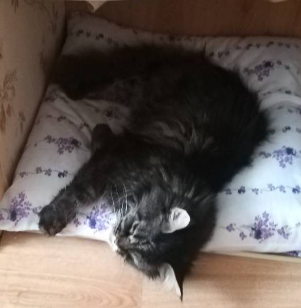 Завтра срочно нужно варить тыквенный сок, а то у меня в кладовке мышки распробовали Галеусы, сгрызают на них "бородавки".  Зато котик-обормотик  постоянно в привычном положении