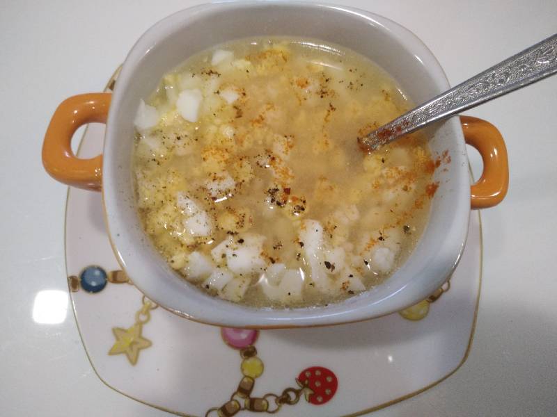 Отвариваем куриный бульон. Отдельно варим яйца и отдельно рис. И собственно все. В тарелку бульон, рубленное яйцо и рис (количество по желанию). Сверху можно присыпать зеленью. И сухариками. Я просто посыпала смесью перцев и чуть копченой паприкой.:03niam: