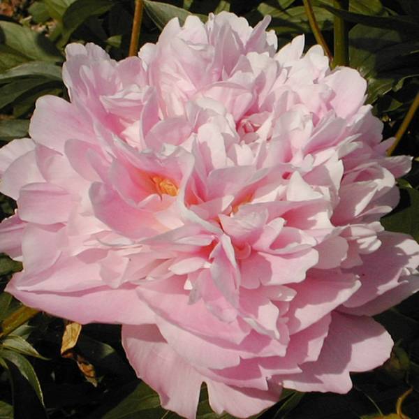Махровый розовидный. Цветок диам.18 см, средне-розовый с лососёвым оттенком, в центре просвечивают бледно-жёлтые стаминодии, аромат нежный, куст компактный, высотой 90 см, стебли прочные, листья тёмно-зелёные, cреднего срока цветения, один из лучших современных сортов