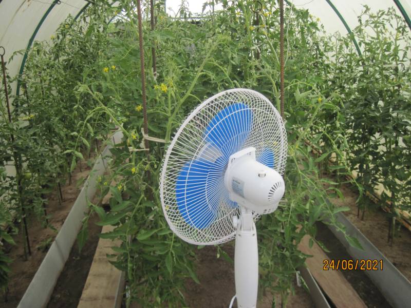 У меня вентилятор трудится у помидор.