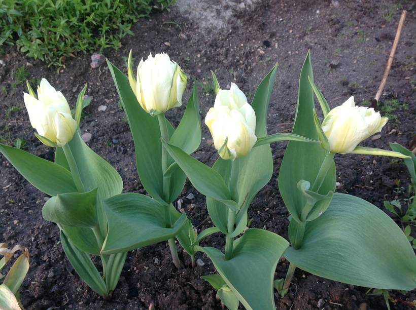 Их закроют лилейники, пионы, хосты. Нарциссы отцвели и я уже уложила их на землю, и отцветающие тюльпаны поже наклоняю, прячу.