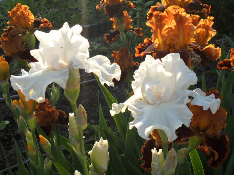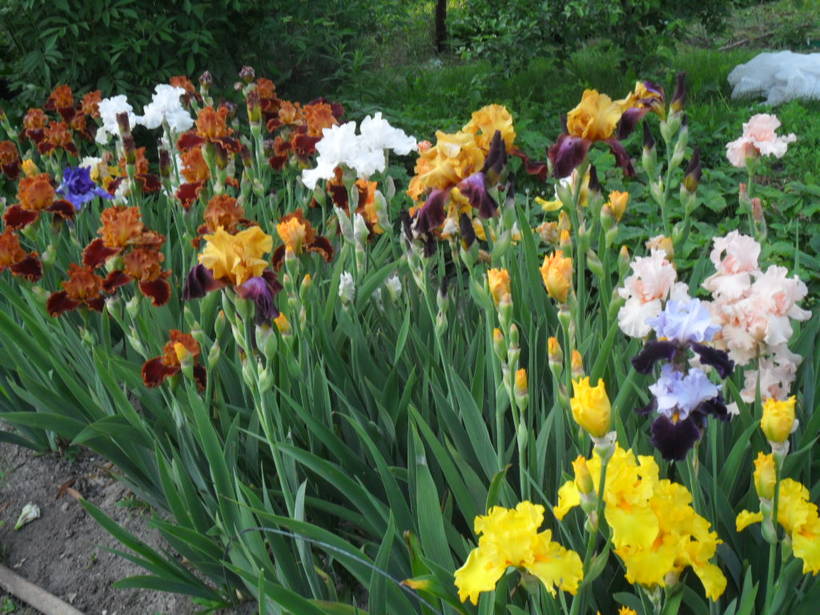 Бородатые ирисы хорошо с розами растут. Единственное - поливать нужно по своему графику