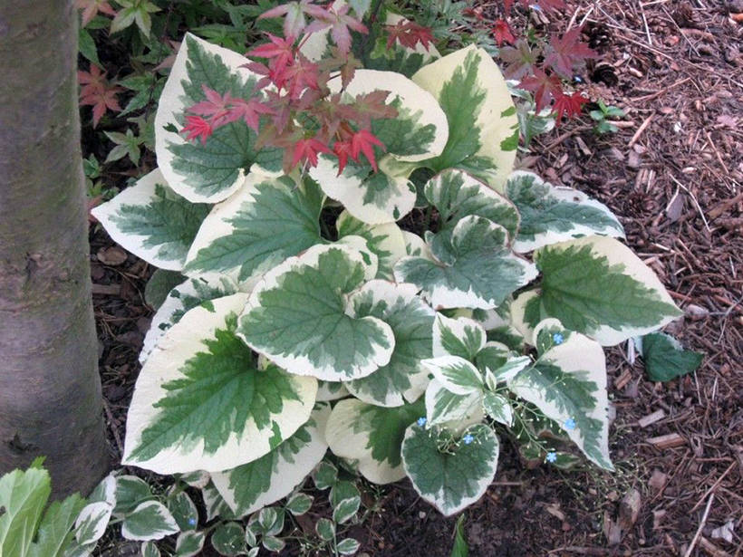 Хоста Blue Mammoth.Одна из красивейших, компактных (не разваливающихся), крупных голубых хост со стойкой пудрой и жесткими листьями, которые не едят слизни.