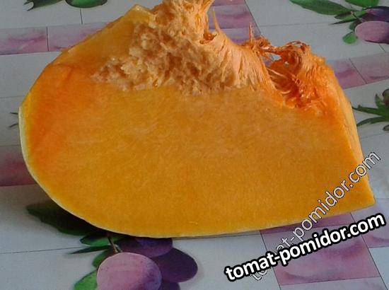 В верхней части тыквины толщина мякоти 7-8 см. Цвет этого фото самый близкий к натуре.