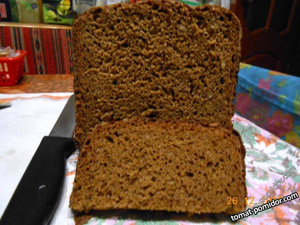 Хлеб очень вкусный, типа Бородинского, испечен в хлебопечке.
