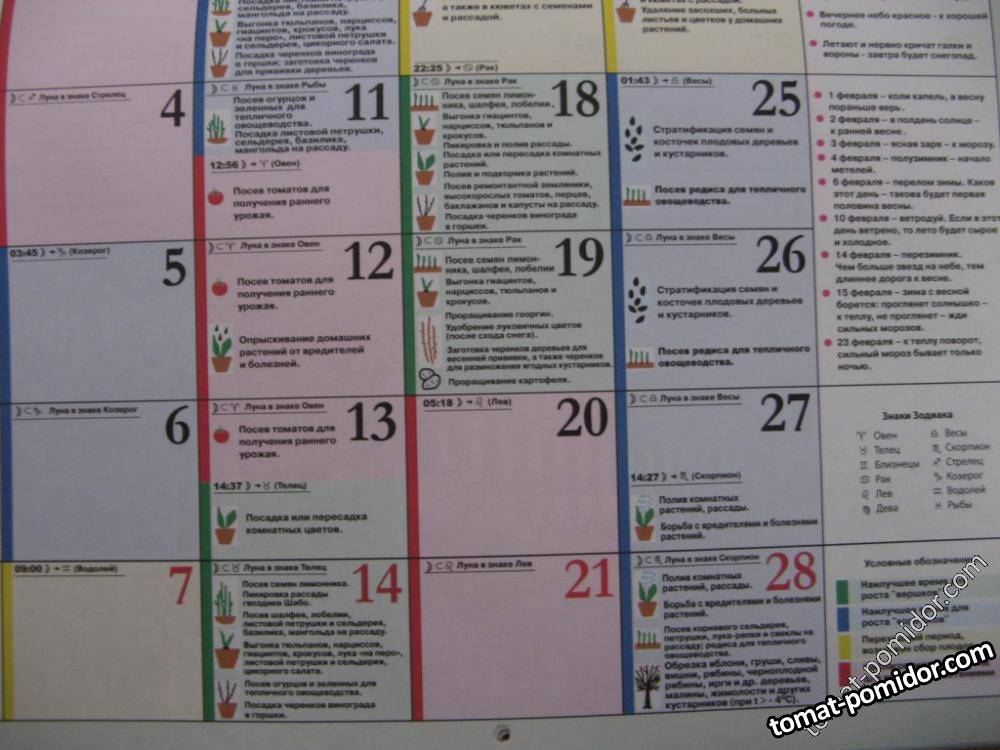 Лунный календарь Зараев Февраль