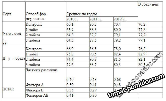 Урожайность томатов в зависимости от формировки 2