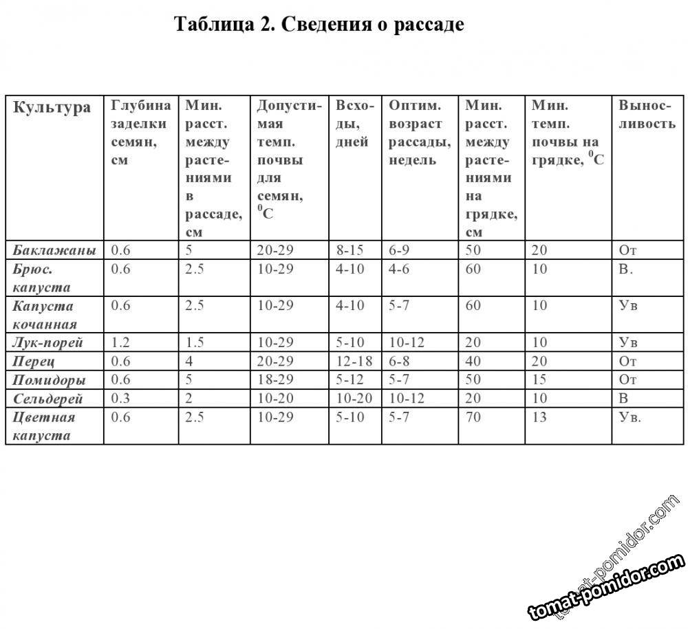 Сведения о рассаде