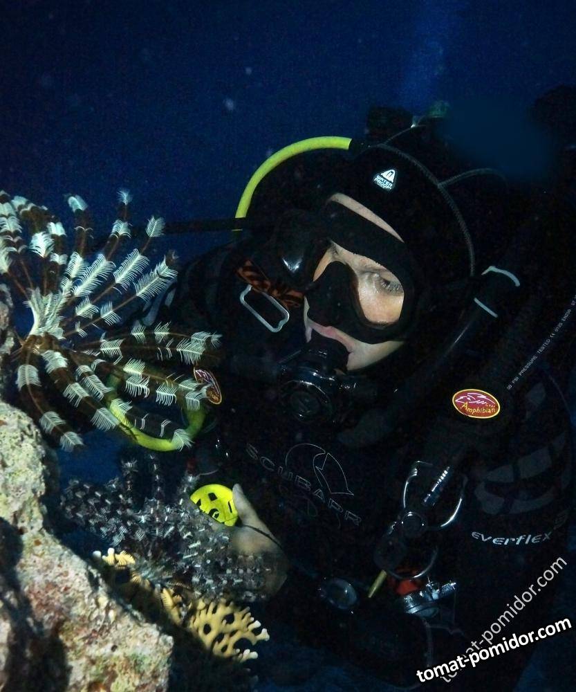 Ночное погружение с морскими лилиями