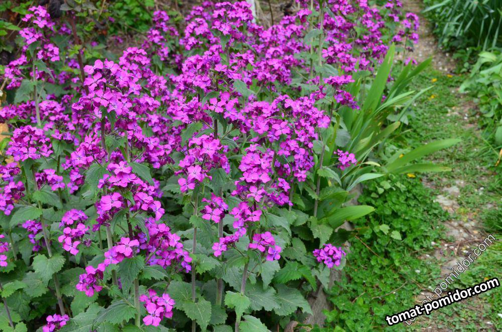 Лунария - двулетнее растение, не требует никакого ухода. Летом вырастает розетка листьев, а на следующий год цветёт. Семена очень интересные: "пергаментная" оболочка круглая - и между этих створок крупные семена, в основном - 4 штуки. Интересны в сухих букетах.